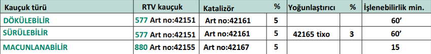 KALIPLAR İÇİN RTV SILIKON KAUÇUKLAR