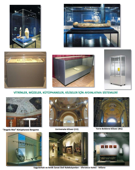 Müzeler ve geçici sergiler için aksesuar programı Metal veya MDF tabanlı akrilik/camdan ölçüye göre yapılmış vitrinler