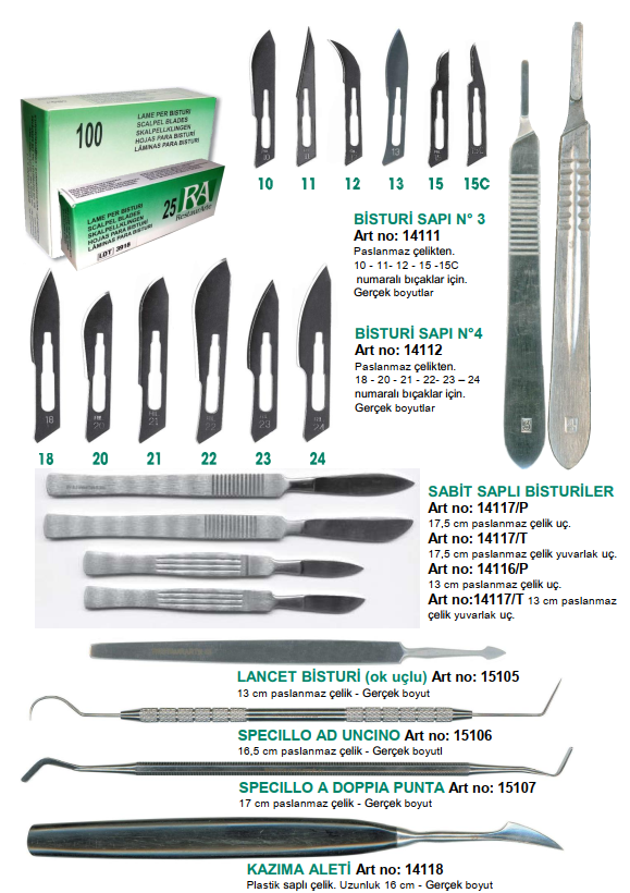 BİSTURİ – SABİT UÇLU BİSTURİ – DİŞÇİ ALETLERİ
