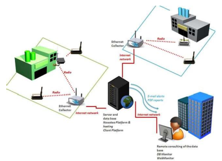 Alıcı, Ethernet (IP) veya GPRS (GSM şebekesi) aracılığıyla birkaç New2steo kaydediciden verilerin uzaktan toplanmasına ve uzak bir web sunucusunda depolanmasına olanak tanır. Bir operatörün kaydedicileri toplamak için her bir konuma seyahat etme ihtiyacını ortadan kaldırır. Tek bir veri tabanına rapor veren farklı alıcılarla birkaç kaydedici sitesi yönetilebilir. Bir sensörle donatılmış kaydedici ölçümü algılar ve radyo aracılığıyla alıcıya iletir, alıcı da ölçümleri Ethernet veya GPRS aracılığıyla merkezi bir veri tabanına iletir. Gerçek zamanlı alarmlar her yerden e-posta yoluyla denetçiye gönderilebilir. Denetleyici ölçümlere istediği zaman internet üzerinden erişebilir.