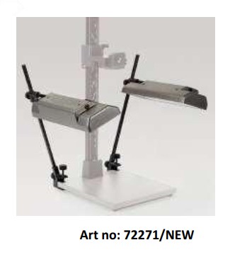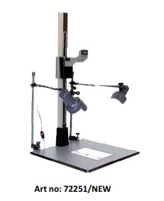 Fotoğrafların, belgelerin ve küçük nesnelerin görüntülerinin alınması ve çoğaltılması için kameraların uygulanması için tasarlanmış stand. Sütun yüksekliği 107 cm. Üniversal eklentili, çoğaltma yüzeyi 60 x60 cm. Reflektörlü lamba tutucusu ile tamamlanır, lambalar hariçtir.