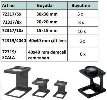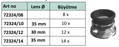 10X büyütme, 28 mm görüş alanı, 20 mm mercek, uzunluk ölçek/bölme 30/ 0,1 mm, boyutlar Ø46x44 mmASFERİK LENS Bozulma olmadan şeffaf kenar