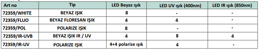 Özellikle resimlerin ve belgelerin, kağıt paraların, değerli taşların ve mücevherlerin incelenmesi için uygundur. Ultraviyole ışık, tablolar ve banknotlar üzerinde floresan kontrolü sağlar. Kolayca taşınabilir. ABS gövde. Bifokal bikonveks lens 30x ø 21 mm odak uzaklığı 12 mm.60x lens ø 12 mm odak uzaklığı 9 mm Büyütme 30x, 60x Çift LED ve UV aydınlatma Boyutlar kapalı 65 x 40 x 22 mm Açık boyutlar 100 x 40 x 22 mm Pil 3xLR1130. Ağırlık 56 gr Taşıma için kordon. Batarya 2x1,5 V-Ø