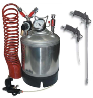 Art no: 11412 Su yada solvent bazlı ürünler için uygundur. Özellikle suya karşı tepkisiz maddeler ve reçine enjeksiyonu ile kullanılır. 8 litrelik inox çelikten deposu var. Manometresi, emniyet valfi, enjektörlü tabancası, 3,75 metre uzunluğunda spiral borusu ile birlikte tedarik edilir. Muslukları olan iki çıkışı vardır. Tabancaya G18 lik bir enjektör de takılabilir.