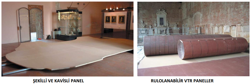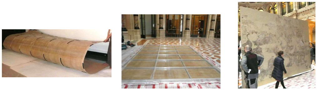 Resmin yapıştırılmasının tersine çevrilebilirliğini sağlamak için, 2 mm'lik bir aglomere mantar tabakası tedarik edilir ve kontak yapıştırıcı ile uygulanır. Tonozlar, nişler veya sütunlar için şekilli ve/veya kavisli paneller talep üzerine üretilmektedir.