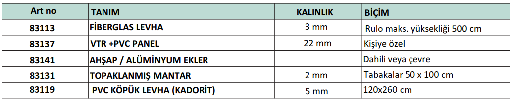ALVEOLAM standart aletlerle (daire testere ve matkap) işlenir, fiberglas tozu zararlı değildir, ancak cildi tahriş eder, bu nedenle toz emicilerin kullanılması şiddetle tavsiye edilir. Ek yerleri ve kavisli veya bükülmüş parçalar, teknik şartnamelerimize göre aksesuar malzemelerle kolayca temin edilebilir.Panel bağlantıları için aşağıdaki malzemeler mevcuttur: