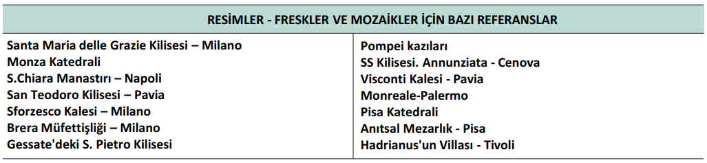FRESKLER VE MOZAİKLER İÇİN DESTEKLER