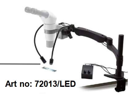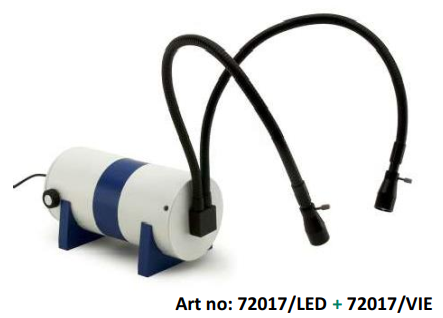 Çift kollu fiber optik ışık kılavuzu Kol uzunluğu 500 mm, çap 13 mm. Numune üzerindeki ışık noktasını optimize etmek için kolların uçlarında iki odaklama lensi ve gelen ışığa polarize lens ekleme imkanı ile donatılmıştır. Art no:72017/LED ışık jeneratörü ile kullanın.
