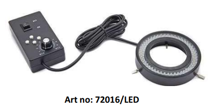Işık yoğunluğunu ayarlama imkanı sunan, halka şeklinde düzenlenmiş 144 LED'li dairesel aydınlatıcı. HORUS ve ARGO serisi mikroskoplar ve diğer marka stereo mikroskoplarla kullanılabilir: LEICA/ZEISS/NIKIN/OLYMPUS vb. Çap: 60mm Güç kaynağı: 230V Renk sıcaklığı: 6400° Kelvin