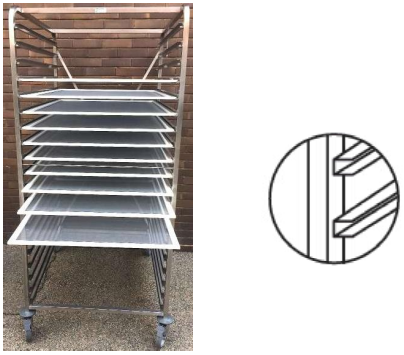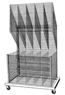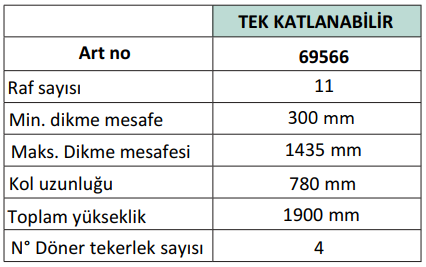 Çerçeve yerleştirme için 20 ray ile donatılmış AISI 304 paslanmaz çelik yapı 770x107x11 mm Raf sayısı: 20Çerçeveler arası mesafe: 80 mm Döner tekerlek sayısı: 4 ø160 mm (2 bloklu).Toplam ağırlık: 40 Kg. Demonte olarak teslim edilir.