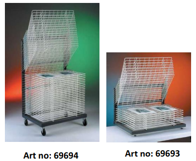 Beyaz RAL 9010 boyalı alüminyum çerçeve Sayfaları kurutmak için naylon ağ. Dış boyutlar 77 x 107 cm. Kurutma alanı boyutları: 101x71 cm. Çerçeve kesiti: 26x11 mm