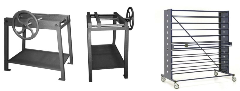 Rulo kağıt/kumaşlar için idealdir. Gri RAL7035 boyalı çelik yapı 125 mm çapında kauçuk döner tekerleklerle donatılmıştır. - Maksimum çapı 16 cm olan rulolar için N°18 konumları. - Rulo desteklerinin kullanılabilir uzunluğu: 1600 mm- Rulo destekler: sökülebilir - Boyutlar 1740x1000 x 1970 h mm. Demonte olarak tedarik edilir.22 ve 8 rulo versiyonu