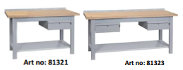 Üst yüzey 40 mm çok katmanlı buharlaştırılmış kayın ağacından yapılmıştır. Güçlendirilmiş metal levhadan alt raf. 60x40x2mm çelik borudan yapı. RAL7004 gri renkte, bilyeli, kilitli çekmece. Art no: 81321 150x75x90 (y) cm 1 çekmece Art no: 81323 200x75x90 (y) cm 2 çekmeceli