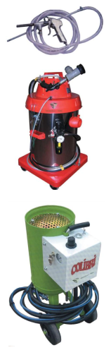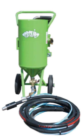 Abraziv malzemenin geri kazanılabilmesi için ve temizlik esnasında çıkan tozun toplanabilmesi için aspiratörü olan kumlayıcı. Çalışma basıncı: 5 ila 8 atm arasında değişkendir. Hava tüketimi. 280 ila 400 litre/dakika.Emmr (aspirasyon) gücü: 1050 watt. Önerilen kompresör: Art no: 16424 - 16471