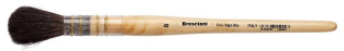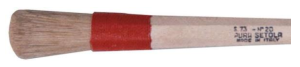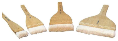 Saf sarı hayvan kılından sicimle bağlı yuvarlatılmış uçlu fırçalar. Ahşap sap.