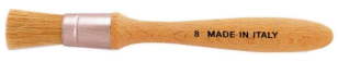 Kazınmış saf sarı domuz kılından fırçalar. Nikel kaplı silindir çeper sacı. Ahşap sap.