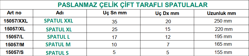PASLANMAZ ÇELİK ÇİFT TARAFLI SPATULALAR