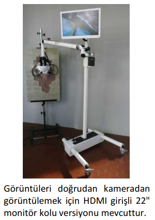 Art no: 71911/GALIL Zemin standı, C montajlı kameralar için çıkış, LED aydınlatma ile tamamlanır.30° eğimli dürbün tüpüBir çift göz merceği: 10xOptik gövde: 8ZOOMLED aydınlatıcı: 2 yarı sert kollu 2x3,6WAmaç: 1.0x (80mm çalışma mesafesi değiştirilebiliristeğe bağlı lensler 0,5x 165 mm, 0,3X 280 mm)Kameralar için C adımlı ışın ayırıcı, 90° eğilebilir kolon kolu mikroskop bağlantısı. Geri çekilebilir tekerlekli yer pinakoskopuH 200 cm / kol 1 m.