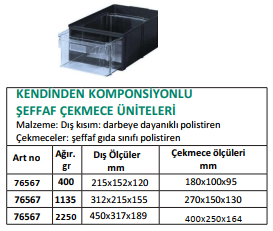 Malzeme: Kristal polistiren Beyaz polietilenden basınç kapaklı