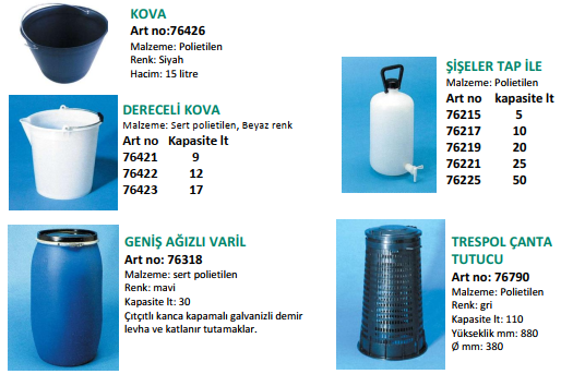 Materyal: Polietilen Kapaklı ve tıpalı