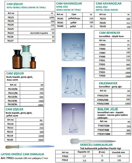 CAM LABORATUVAR MALZEMELERİ