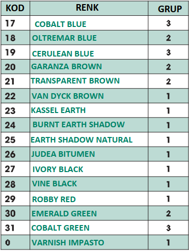RESTAURARTE EKSTRA İNCE BOYA RENKLERİ