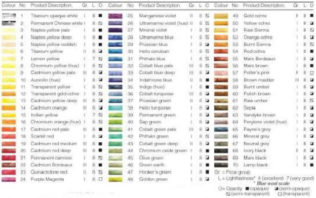 Art no: 64792 Arap zamkı ve bal bazlı ekstra ince suluboyalardan oluşan yeni profesyonel seri, 15 ml'lik alüminyum tüplerde 50'si tek pigment olmak üzere 70 renk içerir. Bu suluboyalar en yüksek stabilite, saflık ve mükemmel ışık haslığı standartlarını sunmaktadır. Bu renklerin üretiminde sadece en iyi hammaddeler kullanılmaktadır. Üretimde kullanılan bal sadece bir koruyucu olmakla kalmaz, aynı zamanda boyamada eşsiz bir pürüzsüzlük sağlar. Balın yanı sıra Arap zamkının mükemmel kalitesi de üstün kalite sağlar. Bu arap zamkı sadece Sudan'ın orta ve güney bölgesini oluşturan Kordafan bölgesinden gelmektedir. Kullanılan pigmentlerin en yüksek standartları maksimum ışık haslığını garanti eder. Ürün yelpazesi, kullanılan pigmente göre üç farklı fiyat grubuna ayrılmıştır.