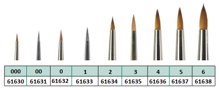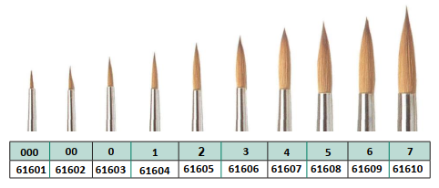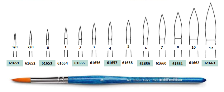 Seri 943 Sentetik kıllardan yuvarlak fırçalar (sansar tipi). Art no: 61825