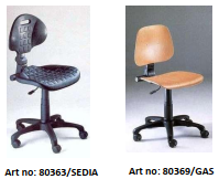 YANMAZ KUMAŞ KAPLAMA Art no: 80375/GAS (kolçaklı) Art no: 80371/GAS (kolçaksız) Bilgisayar teknolojileri, teknik çizim ve tümbilimsel veya restorasyon laboratuvarları içintasarlanmış koltuk koleksiyonu. İyi ergonomikdestek ve avangart tasarım ile karakterizeedilirler. Güçlendirilmiş plastikten oturma yeri ve sırtlık, darbeye dayanıklı PVC dış koruyucu kılıf. Poliüretan reçine köpük dolgu. Gaz pompası ile koltuk yükseklik ayarı, kalıcı temas mekanizması ile sırtlık eğim ayarı. Kolçaklar çelik olup kendinden derili poliüretan ile kaplanmıştır. Döner tekerlekli güçlendirilmiş naylon 5 kollu taban. Standart döşeme yanmaz kumaştandır (standart renk siyah, istek üzerine mavi/kırmızı/gri vb. renklerde). 19/09/1994 tarih ve 626 sayılı Kanun Hükmünde Kararname'ye uygunluk. UNI 1335 standartlarına uygunluk