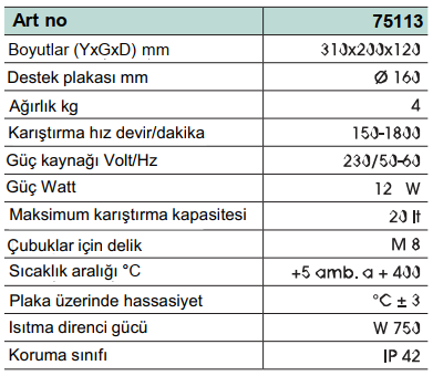ISITICILI ELEKTROMANYETİK KARIŞTIRICI Art no: 75113