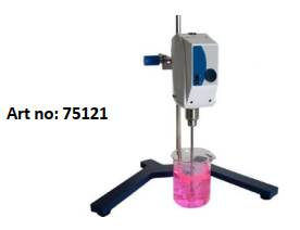 Kademesiz hız ayarlı sessiz mekanik karıştırıcı. Maksimum Ø 10 mm karıştırma çubuklarını sabitlemek için mil ve anahtar ile birlikte verilir. CE işareti. Koruma derecesi IP 43. Ø 12 x 600 mm çubuk ve Ø 7 x 300 mm paslanmaz çelik karıştırma çubuğu ile 130x280 mm destek açıklığı ile komple. Karıştırma mili Ø 50 x 10 mm Dönme hızı: 200-3000 rpm Ağırlık: 4,5 Kg Güç kaynağı: 220 Volt/ 50HzGüç: 75 Watt